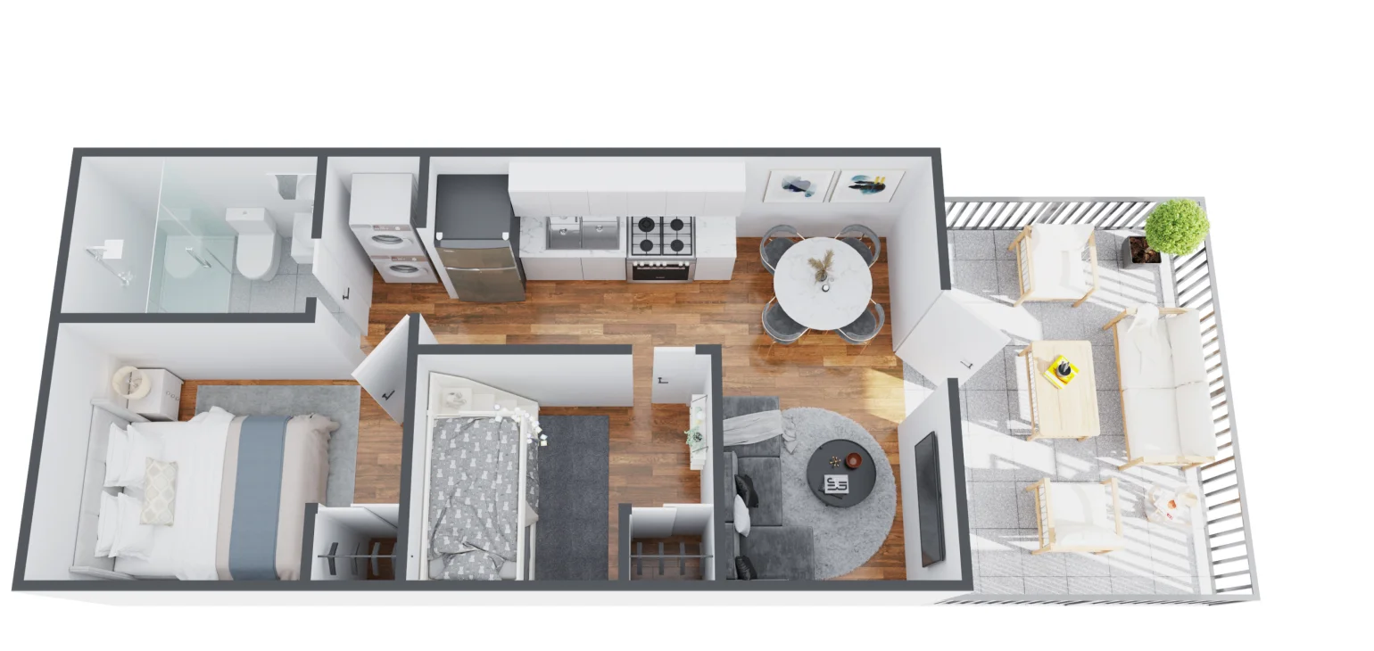 • Park Models: With full kitchens, bathrooms, and optimized layouts, park models are well-suited for year-round living. Extra storage, insulation, and quality finishes make life comfortable even in small spaces.